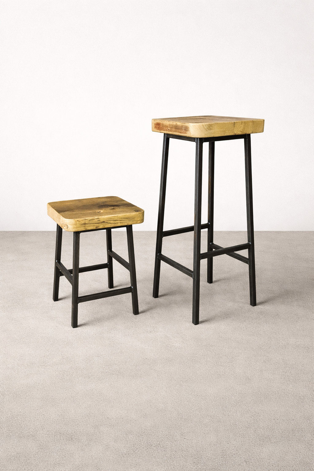 Dieser Hocker verbindet ehrliches Handwerk mit zeitlosem Design. Das robuste Stahlgestell sorgt für Stabilität, während der Sitz aus sorgfältig ausgewähltem Altholz jedem Stück seinen unverwechselbaren Charakter verleiht. Kleine Gebrauchsspuren und natürliche Maserungen erzählen die Geschichte des Holzes – jedes Exemplar ist ein Unikat.