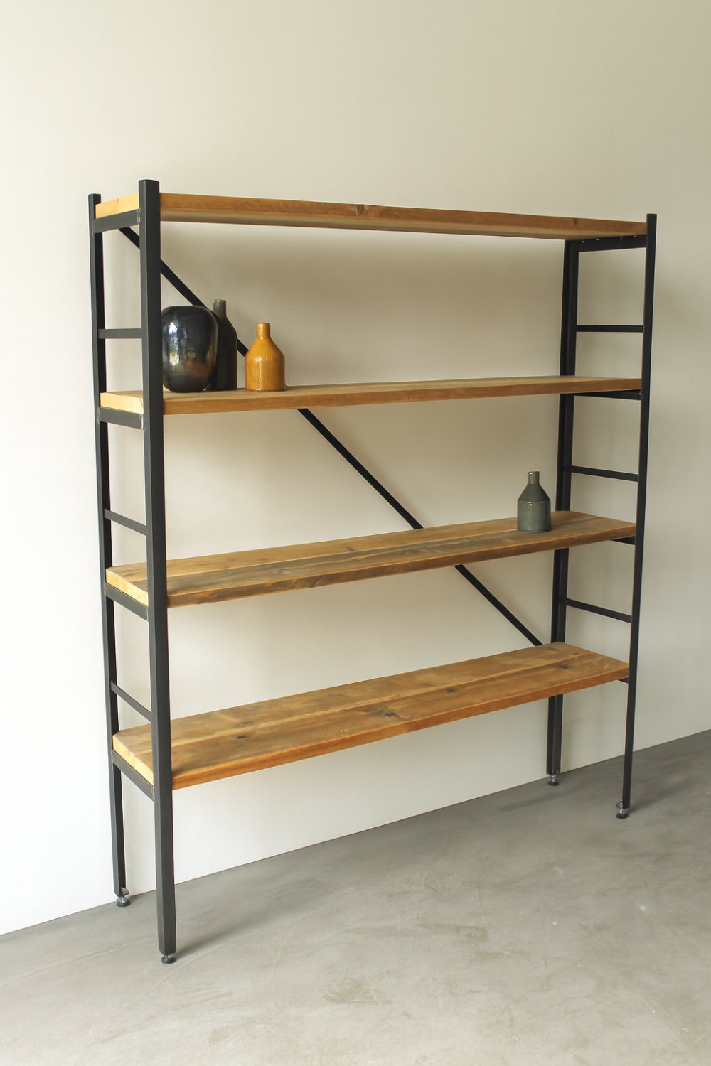 Das Regal aus Altholz und Stahl ist nicht nur funktional, sondern auch ein echter Blickfang in jedem Raum. Egal, ob im Wohnzimmer, Büro oder Arbeitszimmer – es verleiht jedem Raum eine besondere Atmosphäre und lädt zum Entdecken und Stöbern ein.